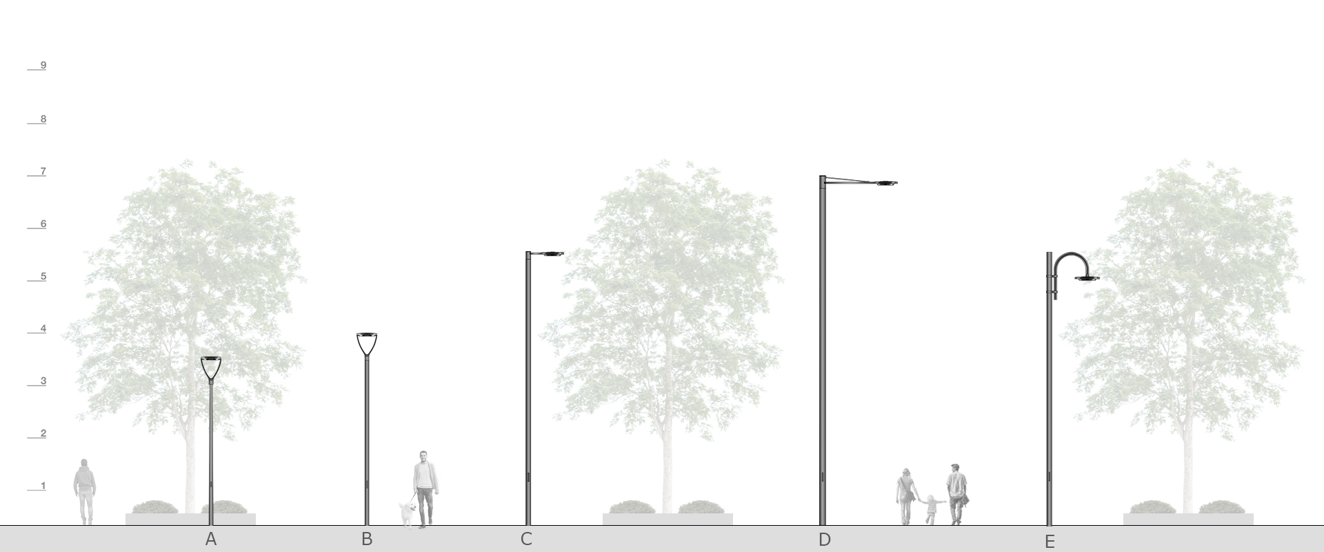 ECORAYS S su palo cilindrico con codolo da 5,5 metri con mensola MP.
