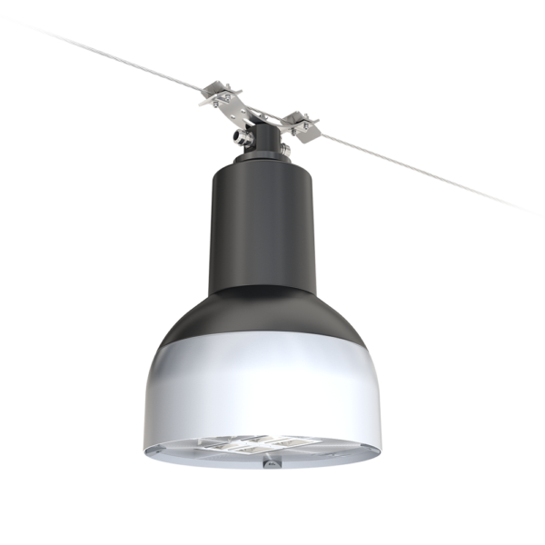Per tutti quei luoghi dove non è possibile l’installazione di pali stradali, puoi scegliere una soluzione decorativa sospesa su cavo.