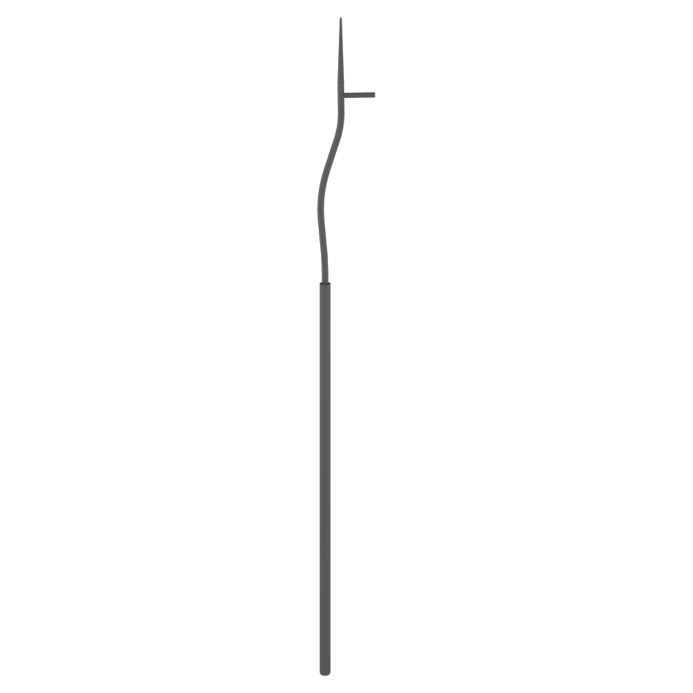 Palo in acciaio a sezione circolare composto da due tratti assemblabili con sbraccio Ø76 e codolo Ø60 opzionale. Parte finale conica.