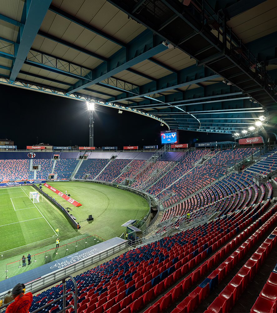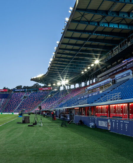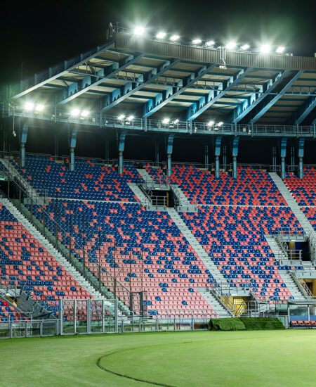 Lo Stadio Dall’Ara, con la sua storia ricca di emozioni calcistiche, è uno dei luoghi più emblematici dello sport in Italia. Grazie all’innovativa tecnologia di AEC Illuminazione, il campo da gioco brilla sotto una nuova luce a LED, offrendo un’esperienza visiva unica per i tifosi e migliorando la visibilità per i giocatori. Lo Stadio Renato Dall’Ara, inaugurato nel 1927, è un simbolo della passione calcistica e della storia di Bologna: questo imponente stadio ha infatti ospitato molte importanti partite e momenti sportivi indimenticabili nel corso degli anni. La sua posizione centrale, i celebri portici e l’architettura storica lo rendono uno dei luoghi più iconici del calcio italiano.